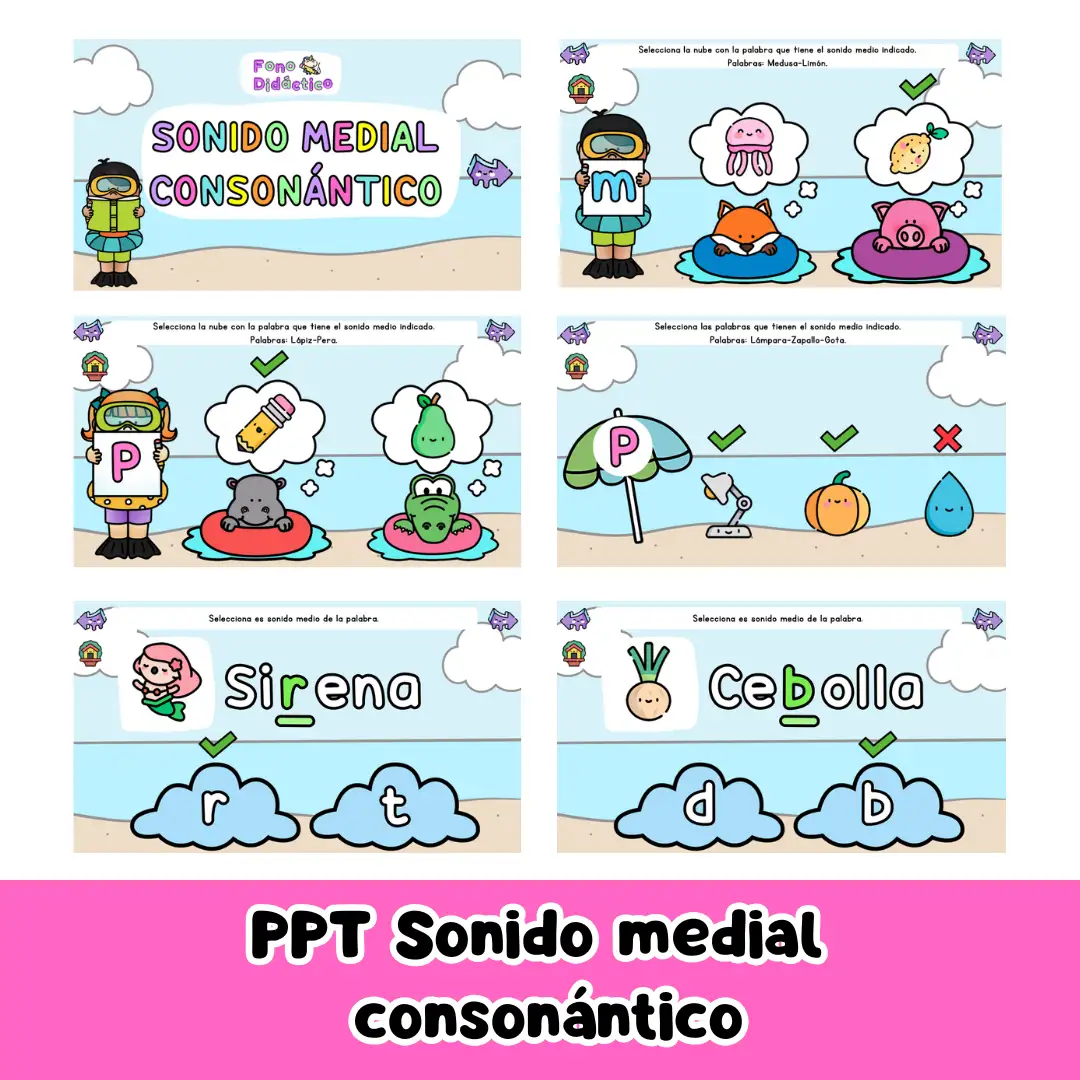El kit sonido consonántico invita a los niños y niñas a descubrir y practicar identificación del sonido inicial, medial y final consonántico además de la manipulación fonémica a través de actividades interactivas e imprimibles.